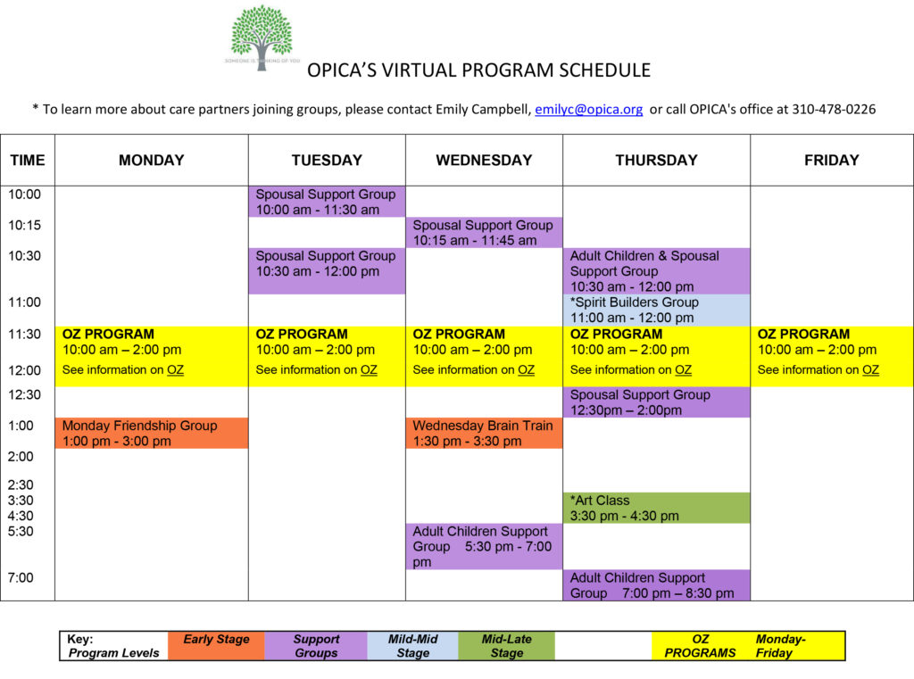 OPICA’s weekly support groups for individuals, couples, and families who are caring for loved ones affected by memory impairment provide: